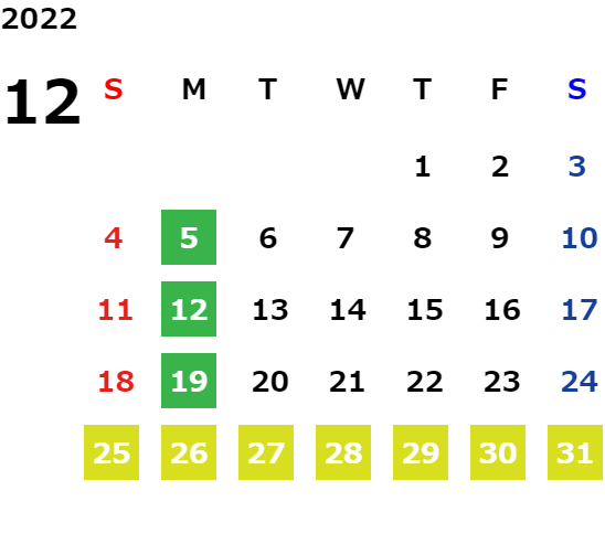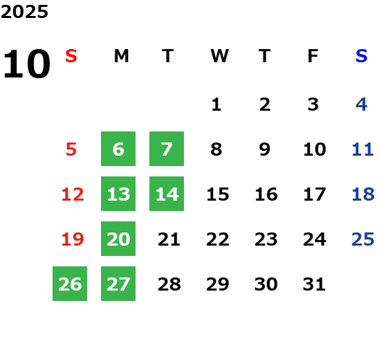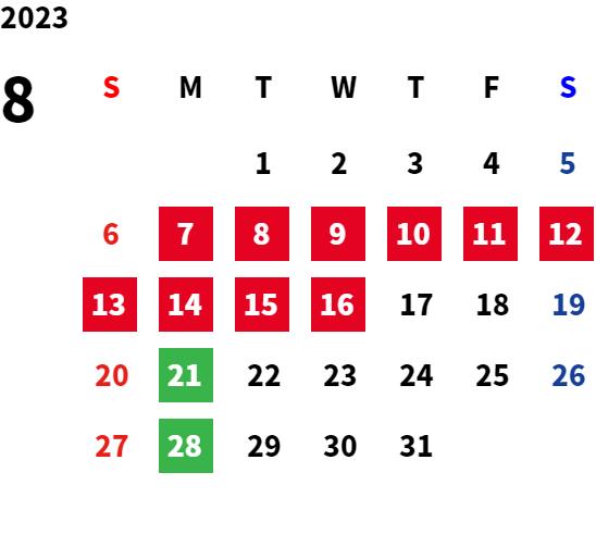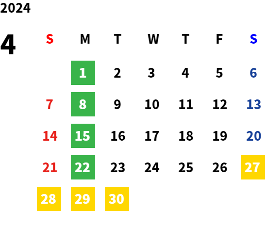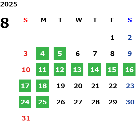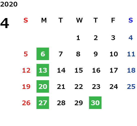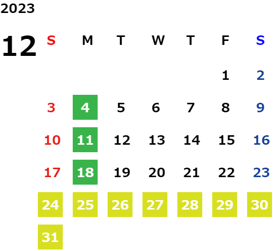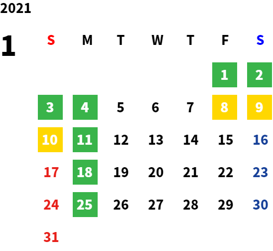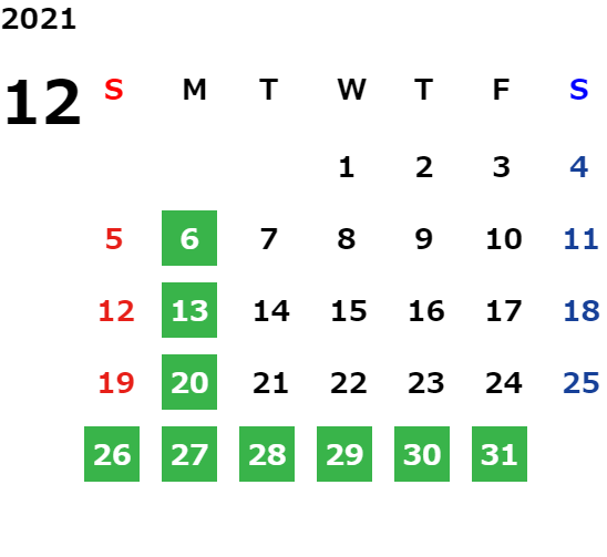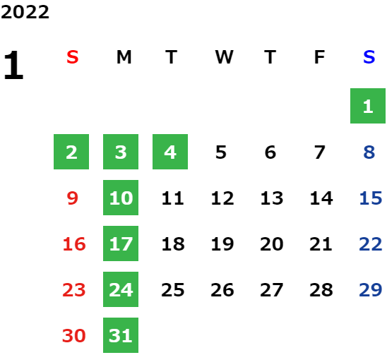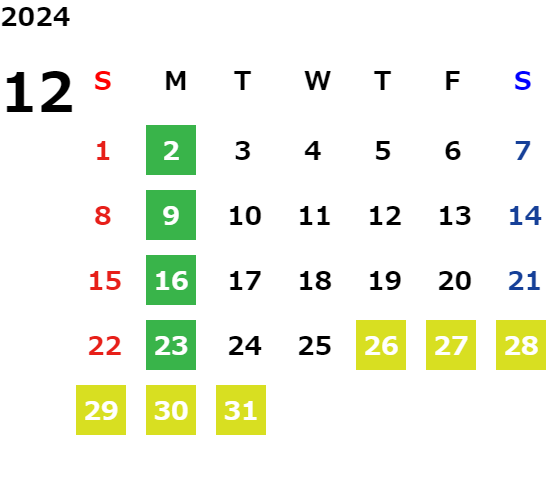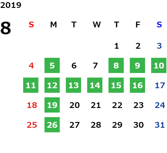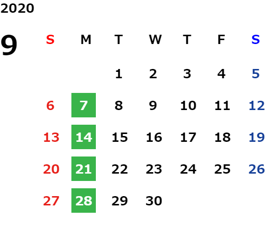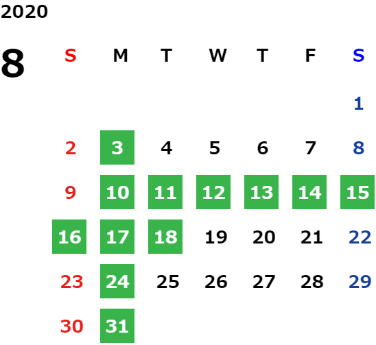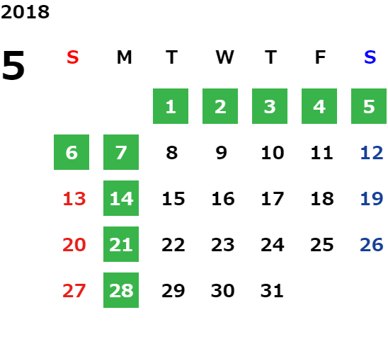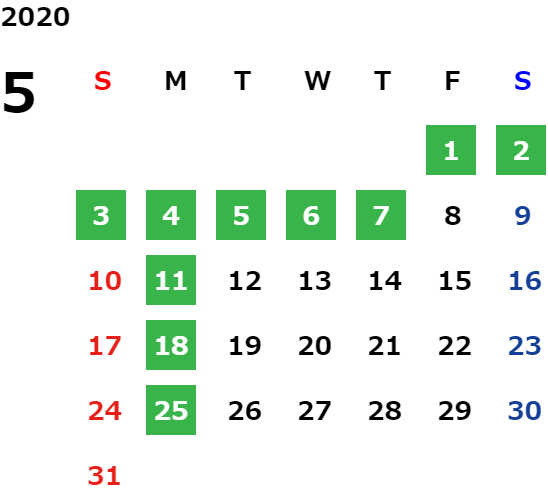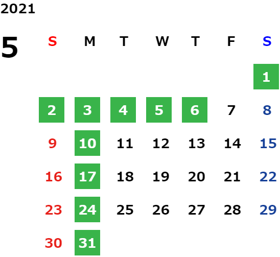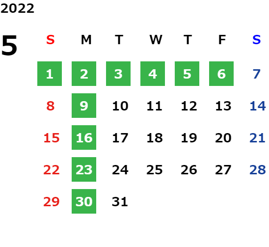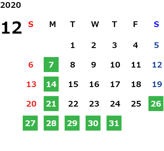 営業日カレンダー
