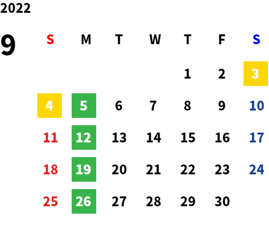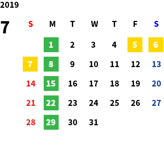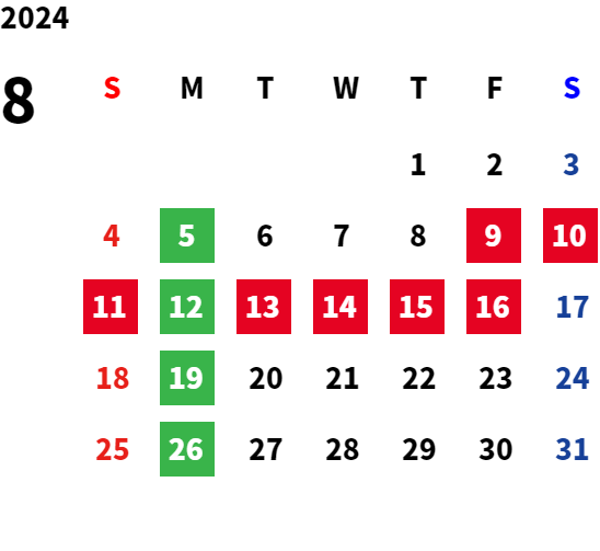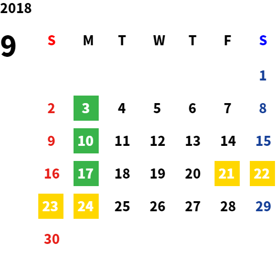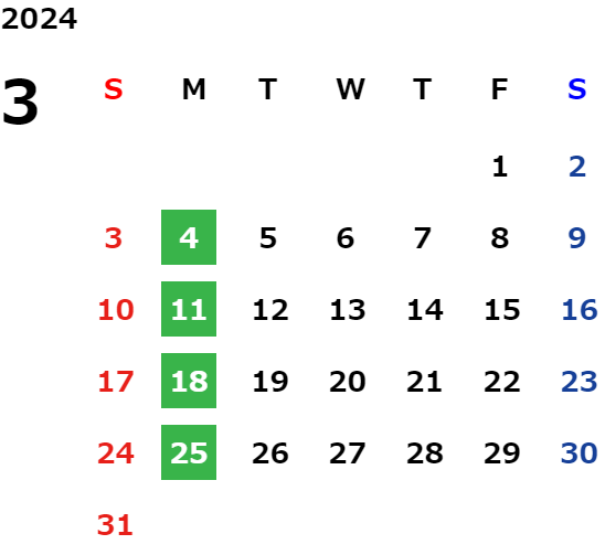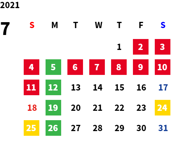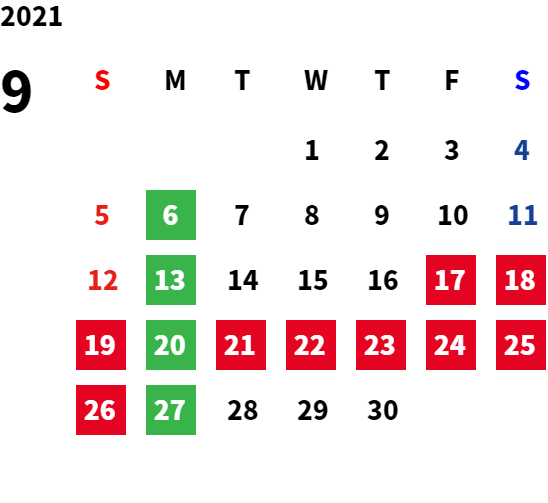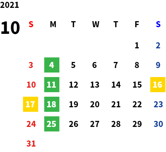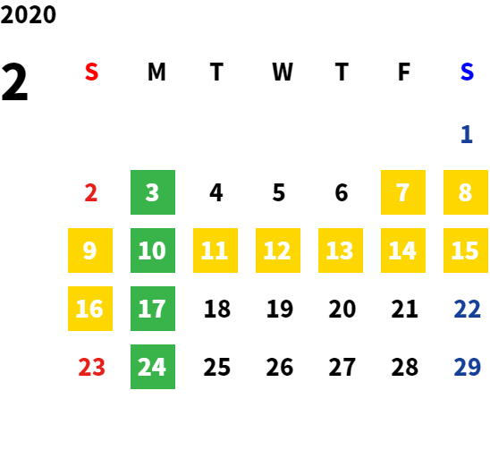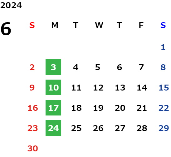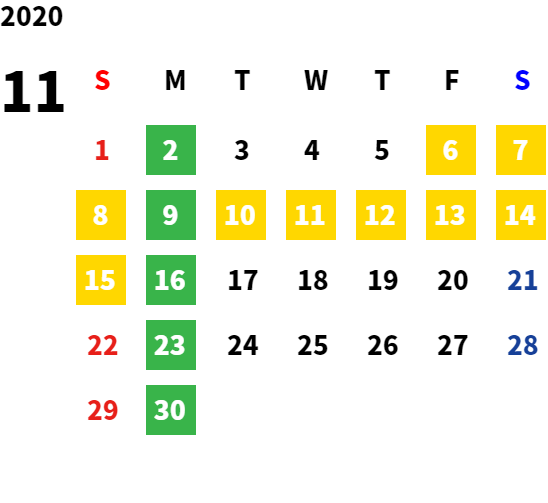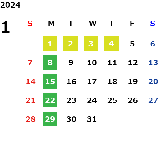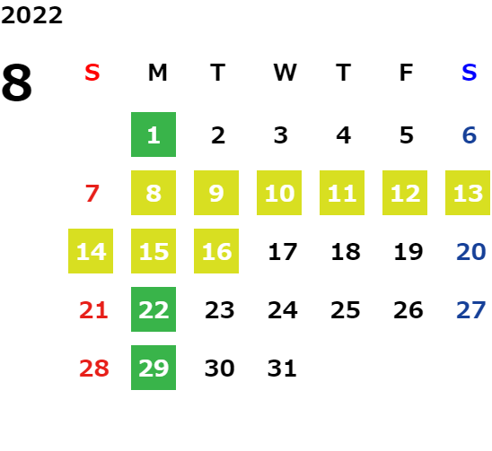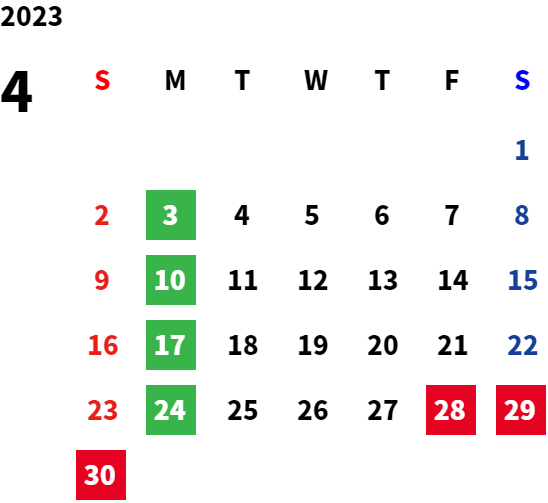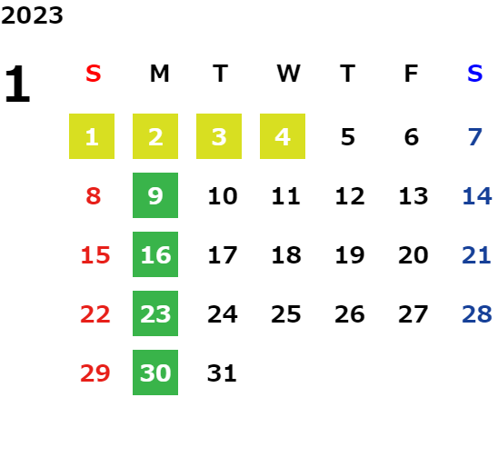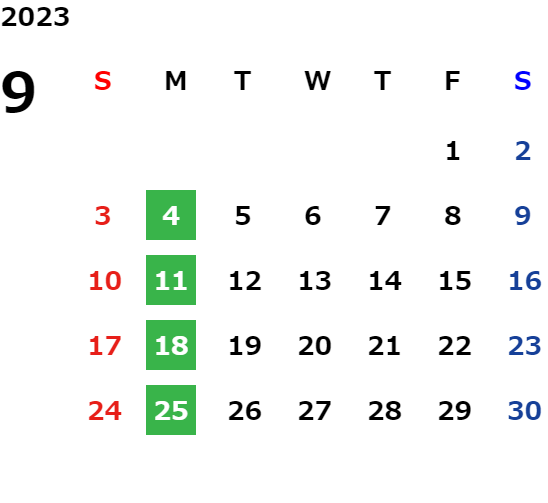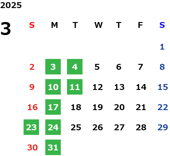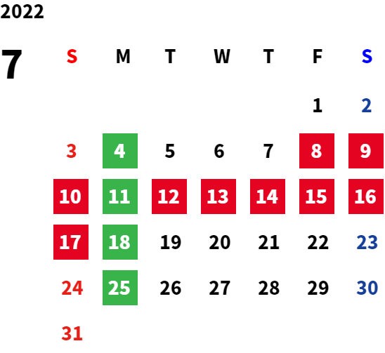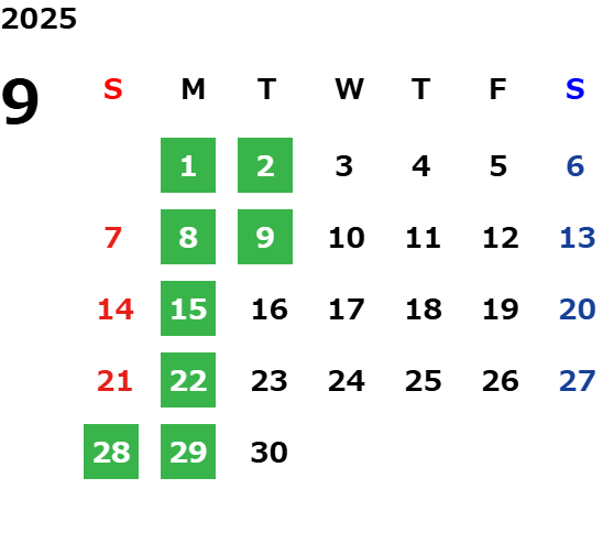 営業日カレンダー